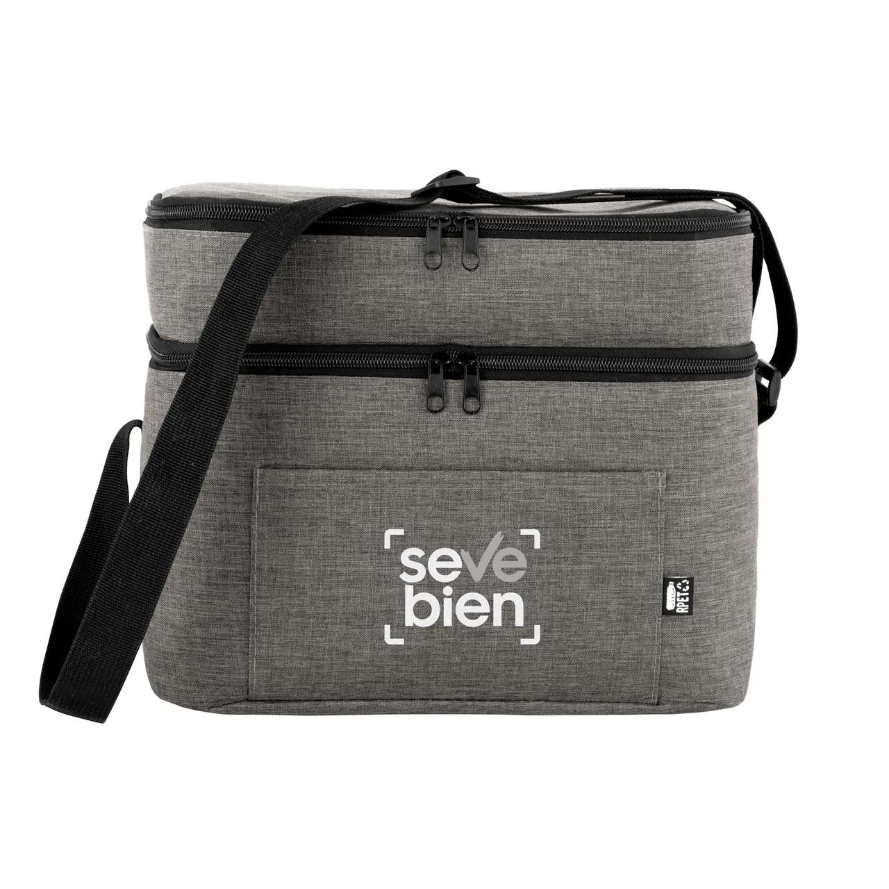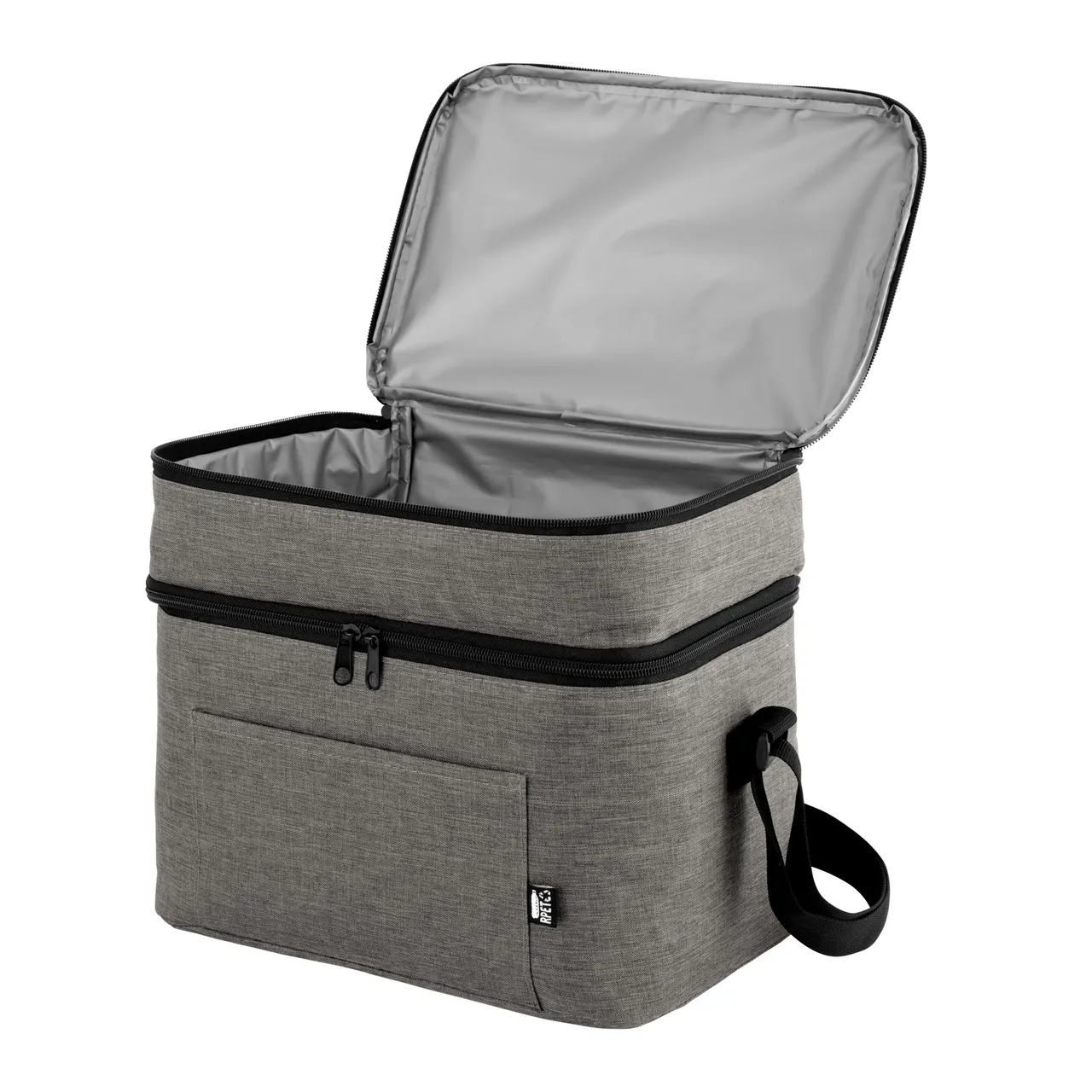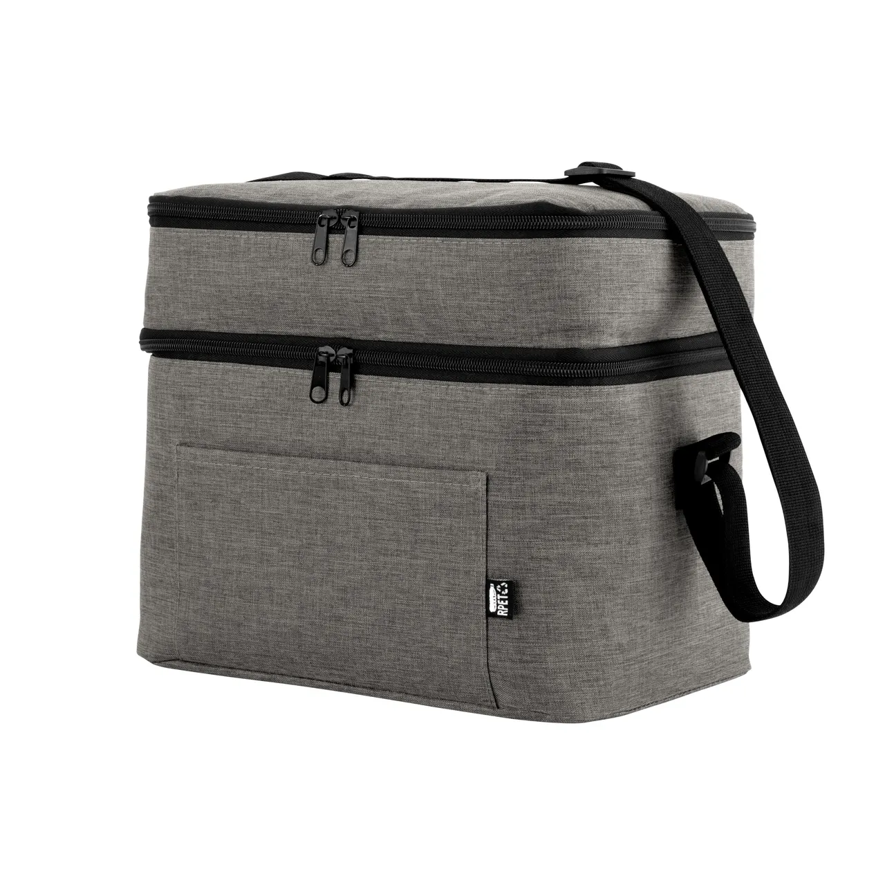 Todo frío, bien organizado.Bolso térmico de dos pisos . Cierres perimetrales bidireccionales. Correa regulable con hebillas plásticas. Bolsillo frontal. Amplio compartimento principal y compartimento superior ideal para separar recipientes con alimentos. Medidas: 30,5 x 20,5 x 24 cm. (total), 30,5 x 20,5 x 17 cm. (principal) y 30,5 x 20,5 x 7 cm. (superior)