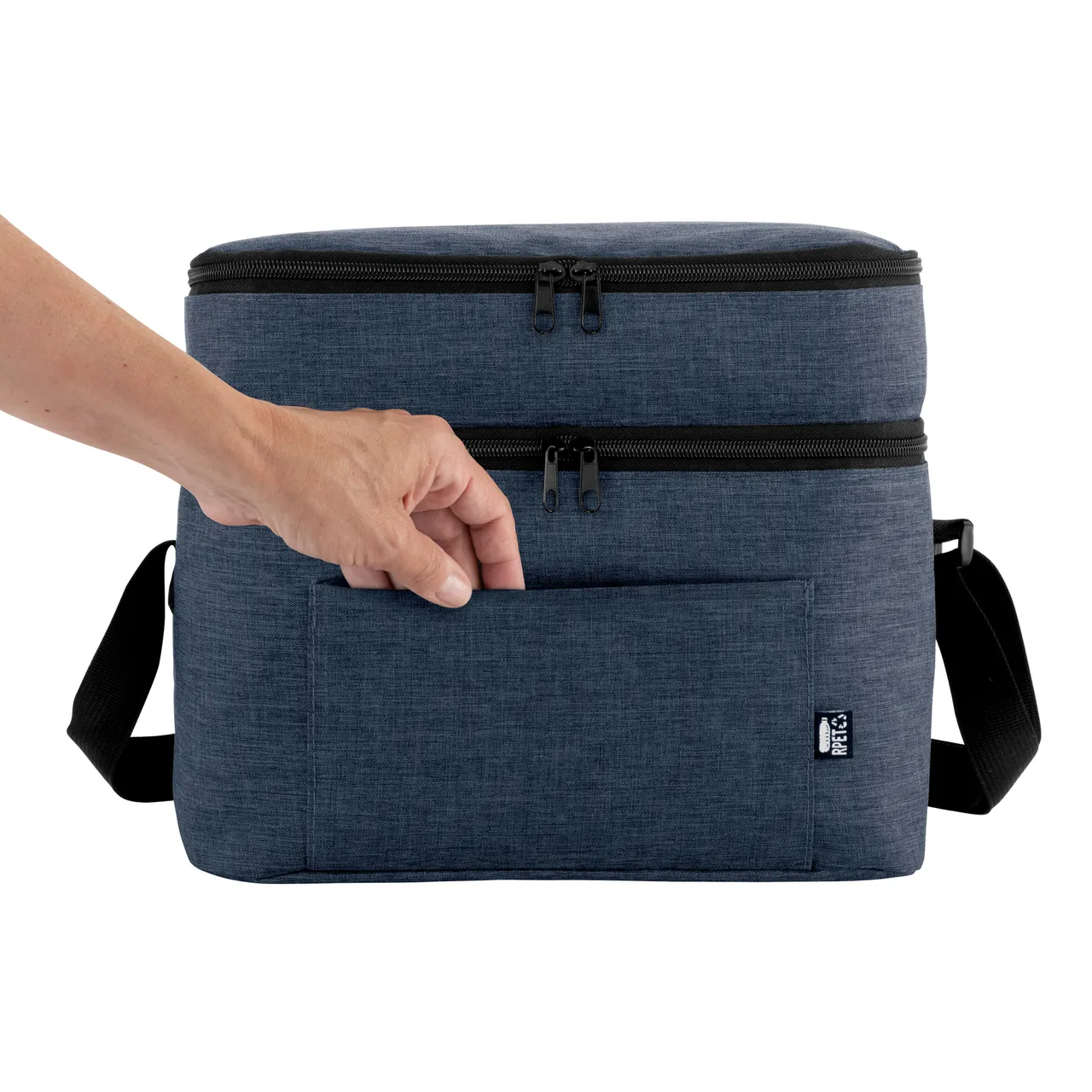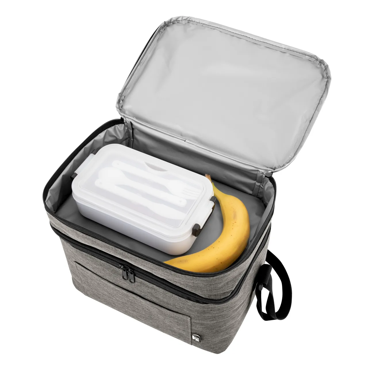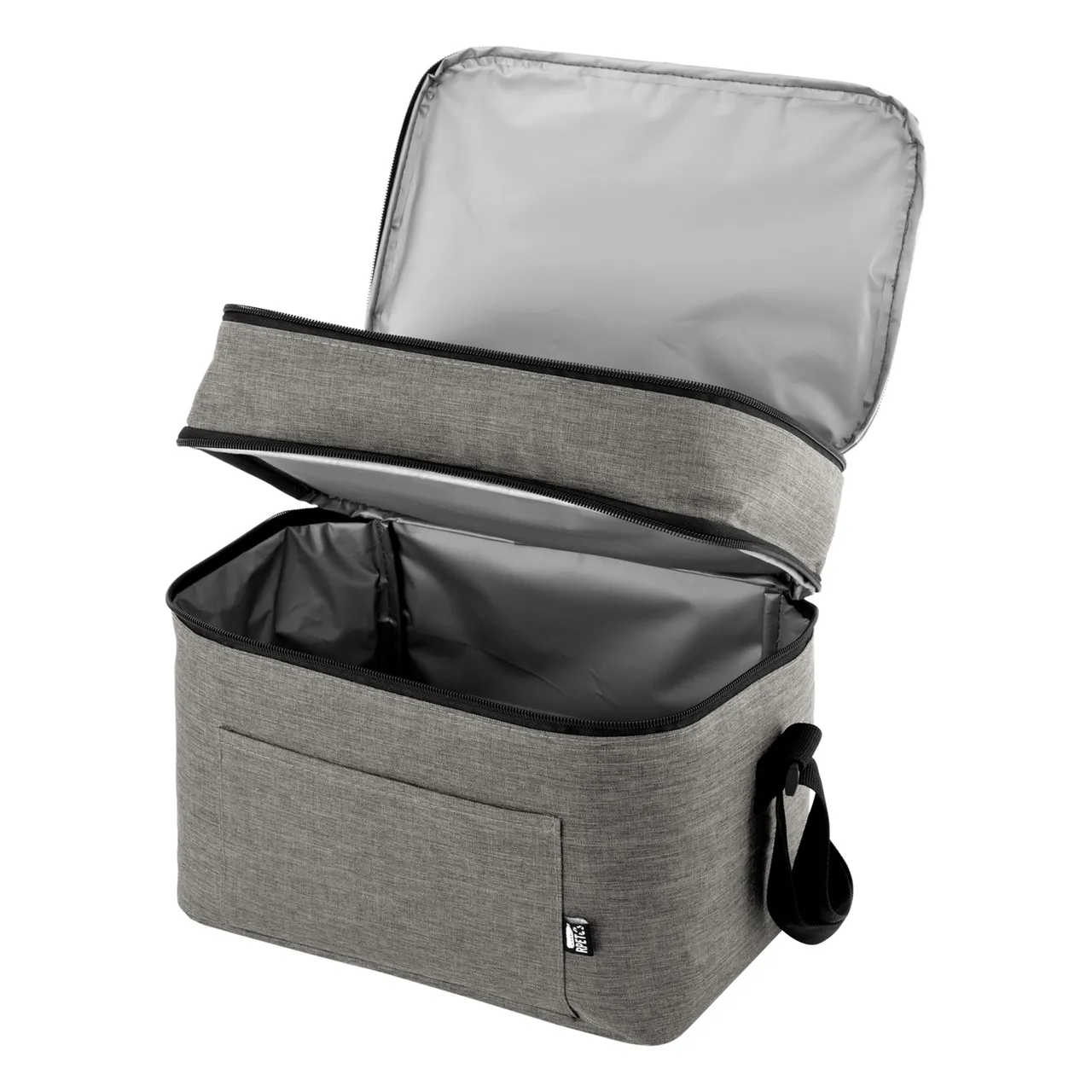 Todo frío, bien organizado.Bolso térmico de dos pisos . Cierres perimetrales bidireccionales. Correa regulable con hebillas plásticas. Bolsillo frontal. Amplio compartimento principal y compartimento superior ideal para separar recipientes con alimentos. Medidas: 30,5 x 20,5 x 24 cm. (total), 30,5 x 20,5 x 17 cm. (principal) y 30,5 x 20,5 x 7 cm. (superior)